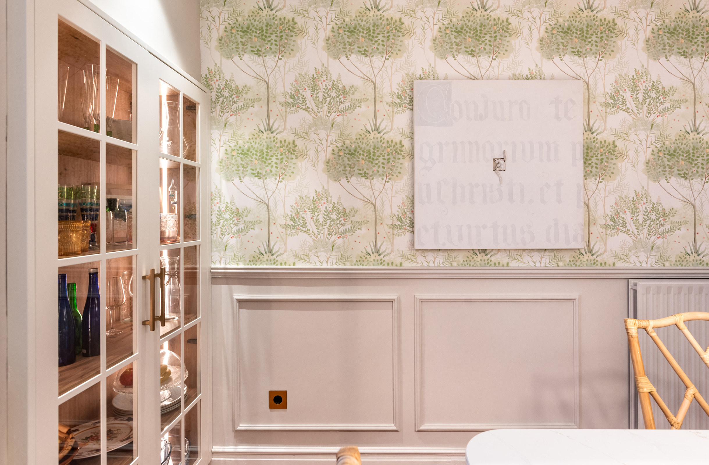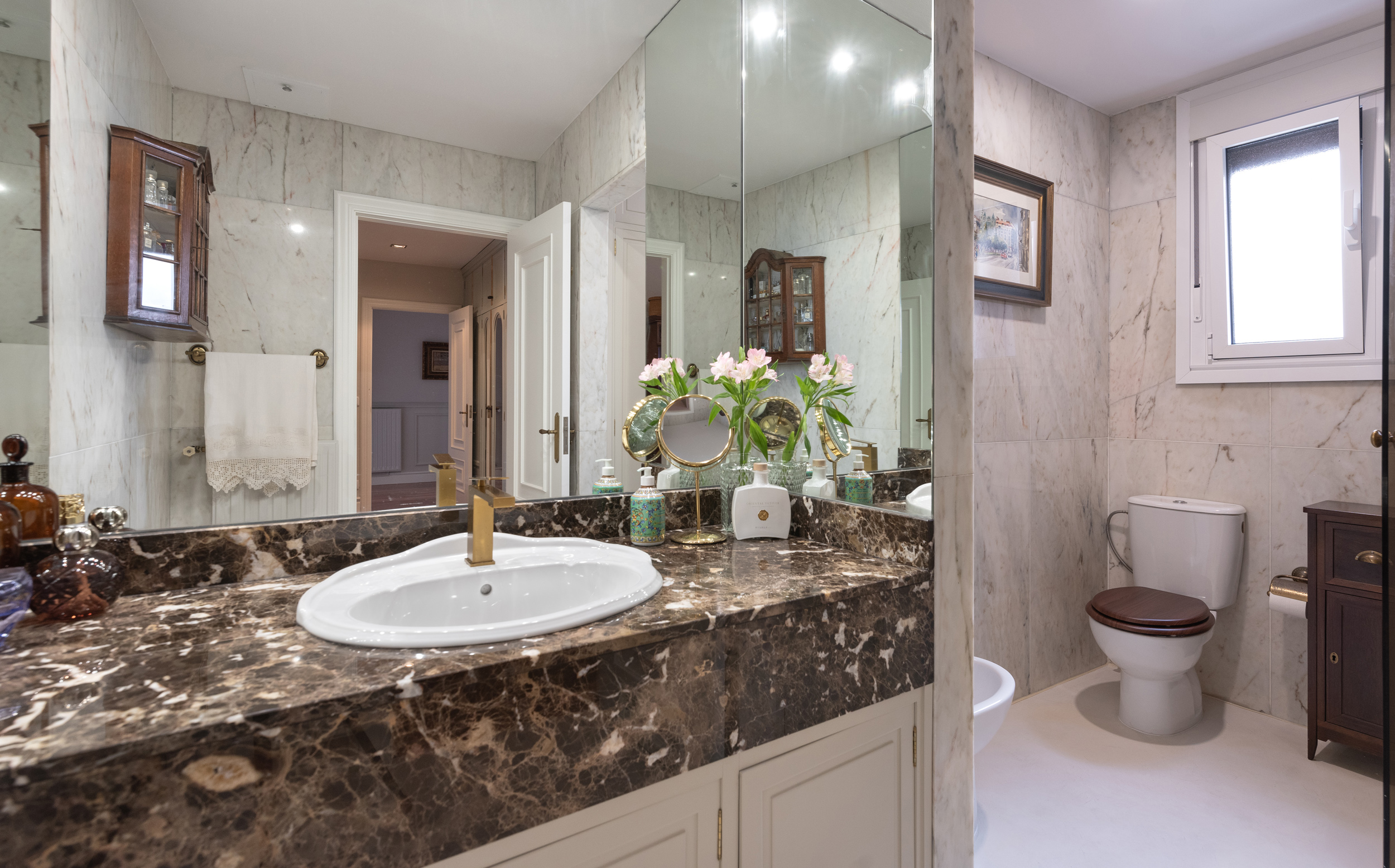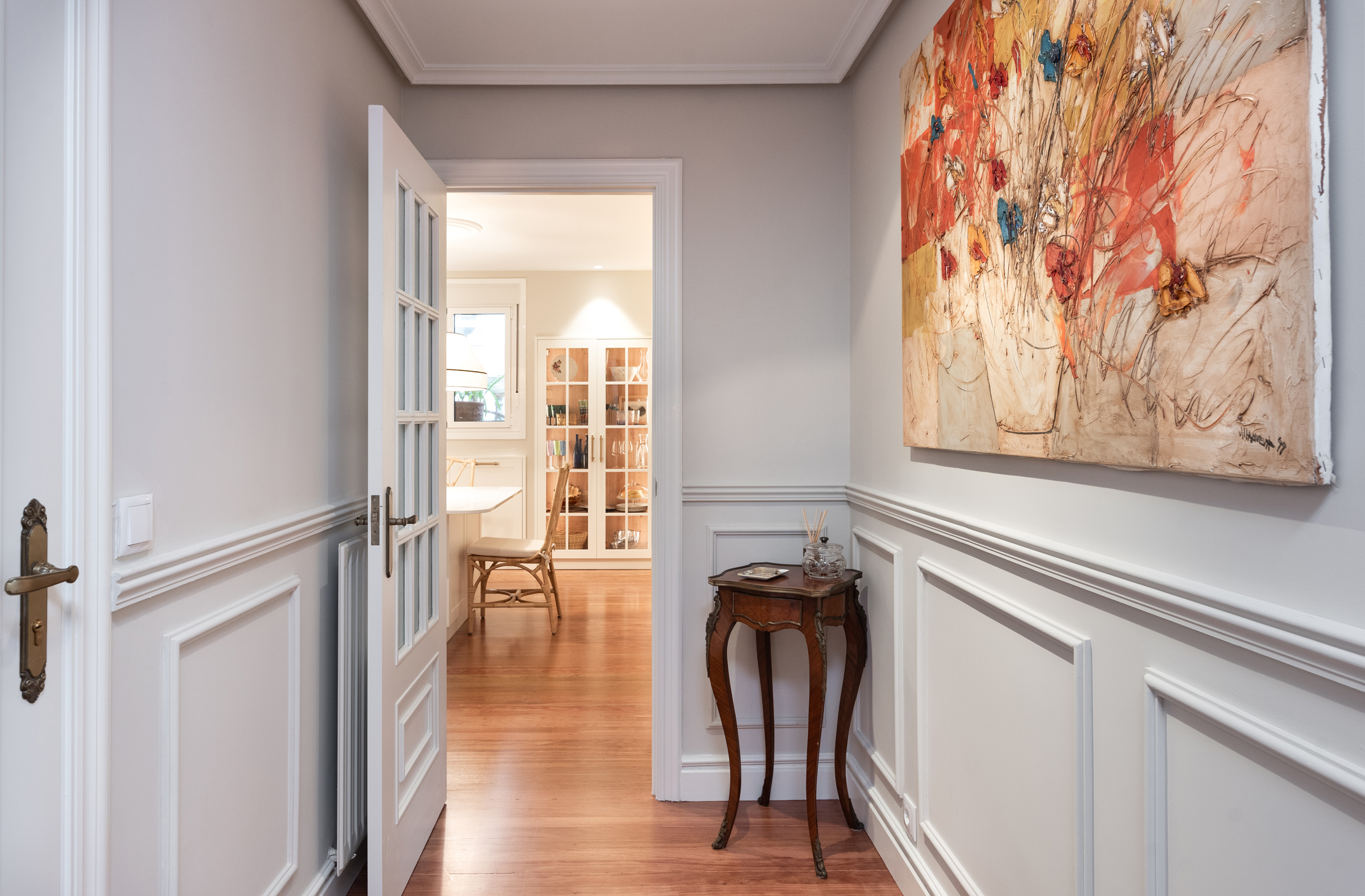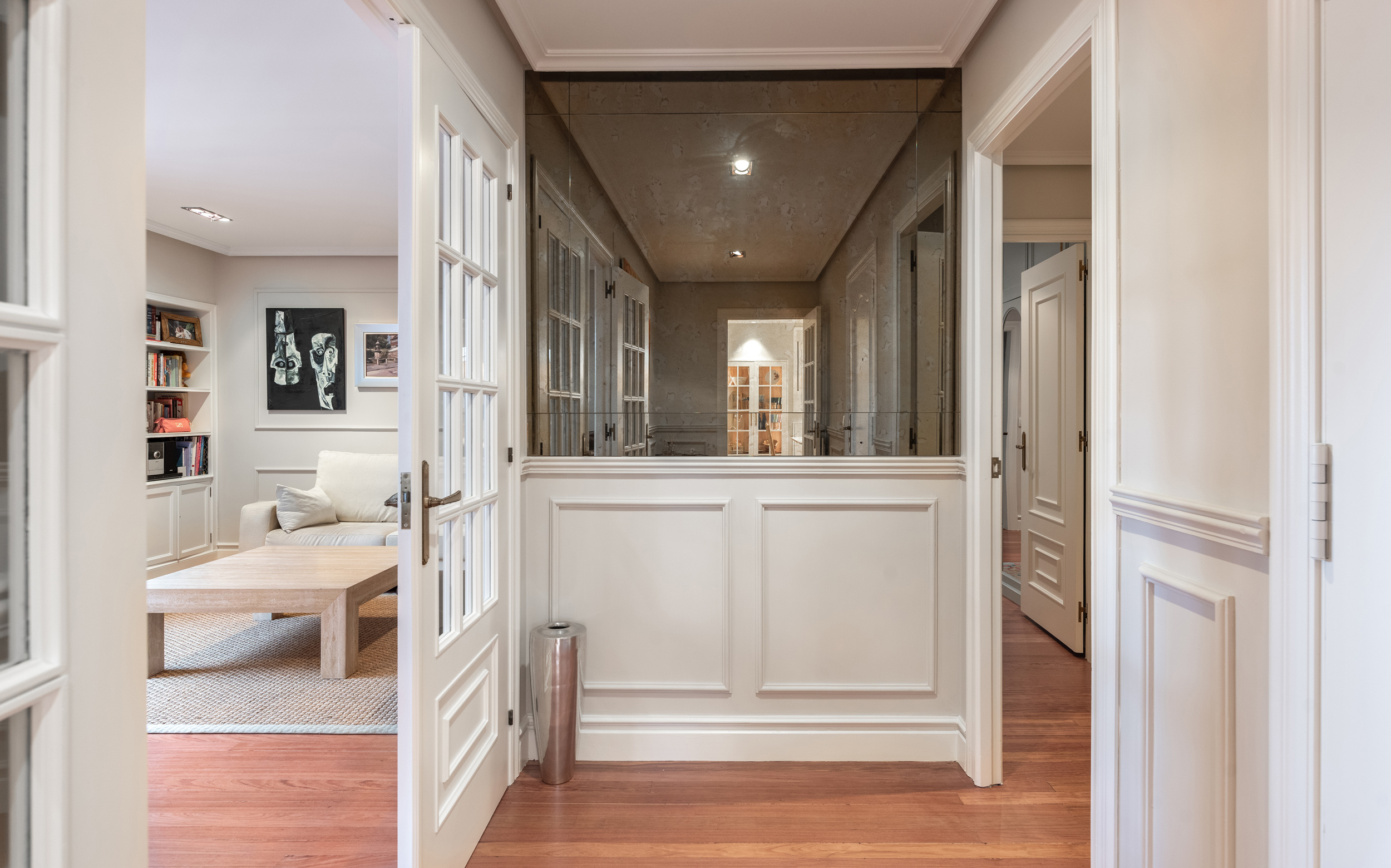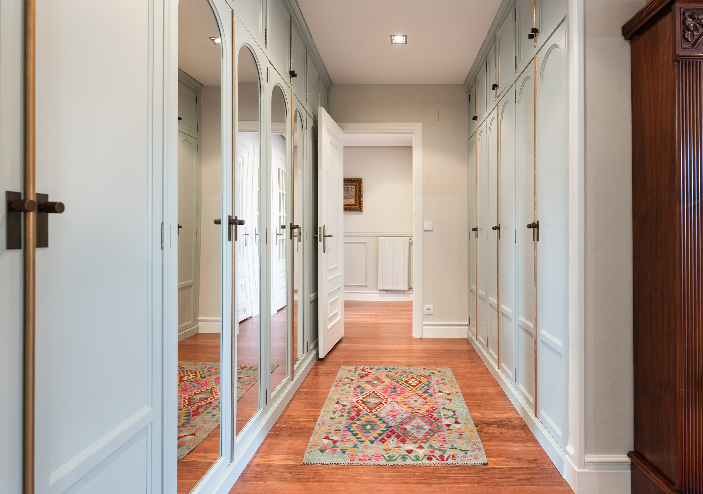 Esta es una reforma realizada con mucho esmero, en el ático de un edificio emblemático del centro de la ciudad, del 1.913 data. Se ha ganado espacio y luminosidad a una cocina, que era un espacio muy reducido e incómodo para el cliente. Se han recuperado los suelos de parquet totalmente, al igual que las piezas empotradas de almacenamientos. El resultado final de las combinaciones de materiales y colores seleccionados ha sido muy interesante por la calidad, alegría y armonía que han aportado a la vivienda, en combinación con lo que se ha mantenido. Los lacados, micro-cementos, piedras y papeles utilizados le han dado una nueva vida a este ático tan estupendo, siendo todo un éxito para el cliente, lo que nos alegra enormemente. Se ha buscado una estética clásica, pero renovada y fresca, a la vez que elegante y funcional. Todos los requisitos se han cumplido, y se continuará aportando con textiles renovados para seguir esta línea que tan buenos resultados está dando a esta vivienda…